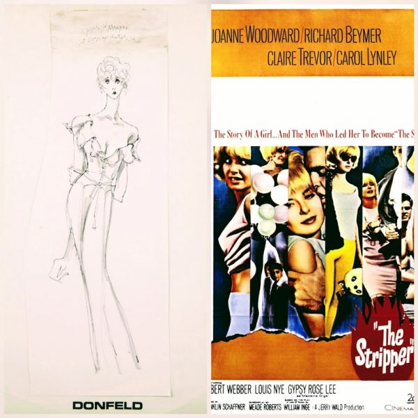 And finally, “a pen on paper with watercolor embellishment inscribed in pen ‘Marilyn Monroe A Loss of Roses, 1960.’ The sketch is mounted on a piece of paper that is printed ‘Donfeld'” (Estimate: $800-$1,200.) After being passed up by Marilyn, A Loss of Roses (based, like Bus Stop, on a William Inge play) was filmed with Joanne Woodward as The Stripper (1963.)