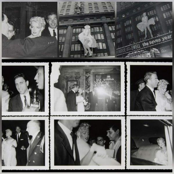 A pair of simulated diamond earrings with clip fitting worn by Marilyn to the world premiere of The Seven Year Itch on June 1, 1955, in New York (Estimate: $50,000-$70,000); and sold separately, a set of candid photos taken that evening, from the estate of Frieda Hull. a member of the Monroe Six, a group of teenage fans based in NYC (Estimate: $1,000-$2,000.)