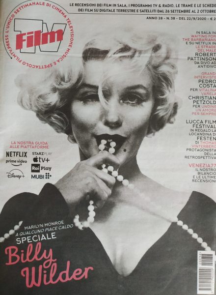 Marilyn, as photographed by Richard Avedon for Some Like It Hot, graces the cover of Italy’s FilmTV magazine this week, with an article about director Billy Wilder inside.