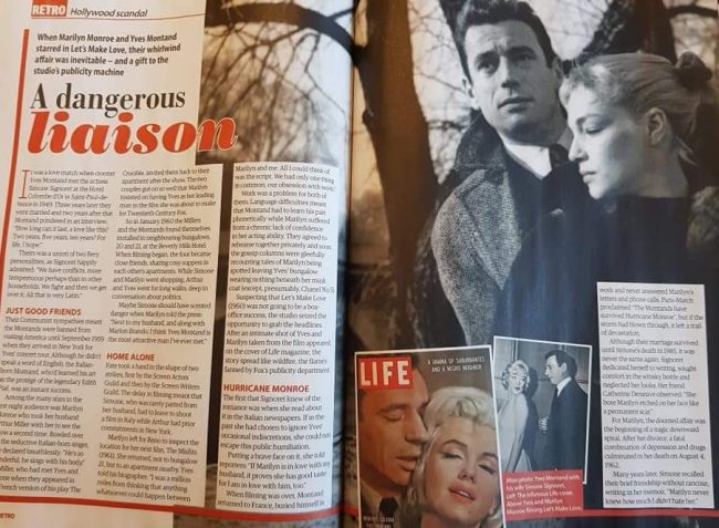 Marilyn’s adulterous affair with Yves Montand, her co-star in Let’s Make Love (1960), is featured in the latest issue of UK nostalgia mag Yours Retro (#32, with Steve McQueen on the cover.)