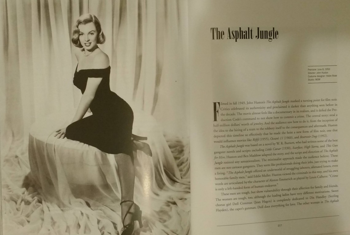 Marilyn’s breakthrough movie, The Asphalt Jungle, is featured in Kimberly Truhler’s new coffee-table book, Film Noir Style: The Killer 1940s. (Although released in 1950, the film was made in the Fall of 1949.) Over ten pages in this fully-illustrated chapter, Truhler discusses Helen Rose’s designs for Marilyn’s character Angela Phinlay, the conniving young mistress of a corrupt businessman; and also looks ahead to Monroe’s ‘femme fatale’ star turn in another film noir, Niagara (1953), with costumes by Dorothy Jeakins. (Kimberly has a long-standing interest in Marilyn, and introduced a screening of Gentlemen Prefer Blondes at the historic Egyptian Theatre on Hollywood Boulevard, as part of a ‘Fashion & Film: The Fifties‘ retrospective in 2018.)