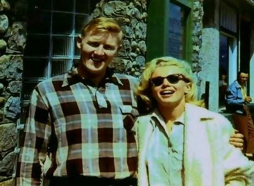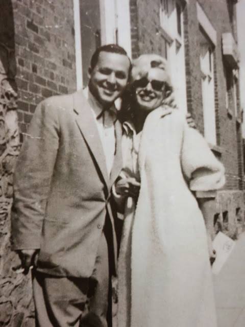 Marilyn was similarly attired in this candid photo with Norm Charach, owner of Broadway Jewellers in Banff. He was waiting to use a pay phone to call his pregnant wife Evelyn. Marilyn was waiting her turn to so she could call Joe DiMaggio, and Norm and Marilyn struck up a conversation and posed for this picture.