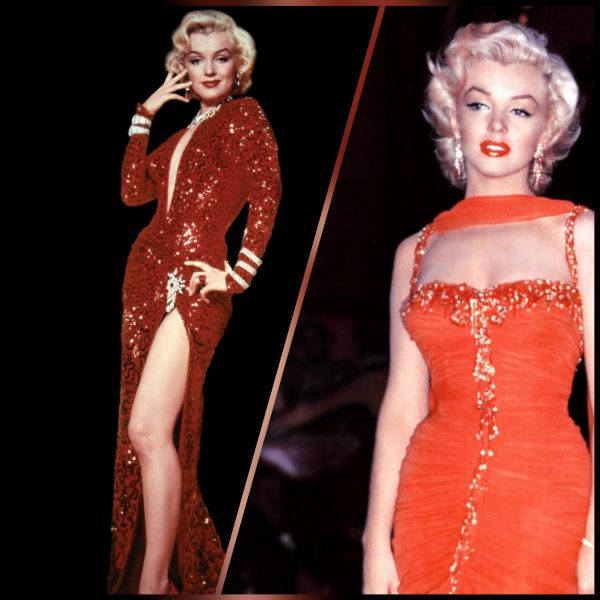While Marilyn’s pink sheath was comparatively demure, Megan’s slit leg recalls Marilyn’s daring red gown in Blondes’‘ opening number, ‘Two Little Girls From Little Rock’; and the fiery orange sported by Megan is echoed by Marilyn’s dress in the dinner scene. And Megan’s stellar connection is further enhanced by ‘Diamonds’, her duet with Normani – the soundtrack to Margot Robbie’s 2020 retread of the Monroe classic in her Harley Quinn movie, Birds of Prey.