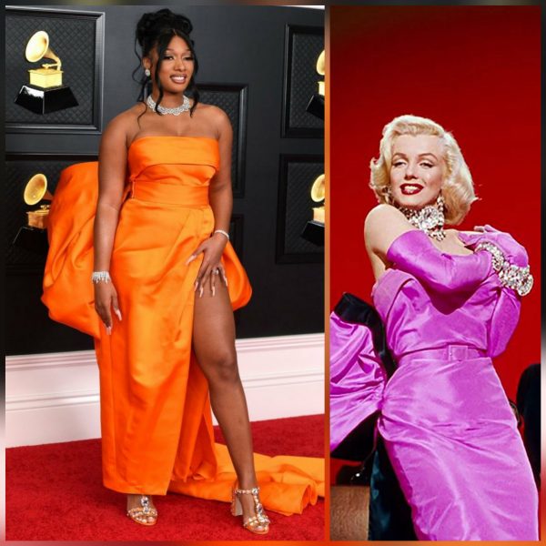 Rapper Megan Thee Stallion picked up three awards, including Best New Artist, at last week’s Grammys. She was also among the best-dressed, with fashion pundits noting that her Dolce & Gabbana gown – set off with Chopard jewellery – resembles Marilyn’s ‘Diamonds Are a Girl’s Best Friend’ costume, designed by Travilla for her signature number in Gentlemen Prefer Blondes.