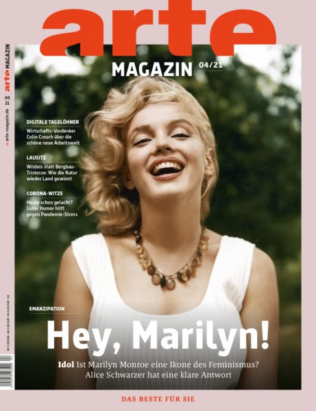 Marilyn graces the cover of Germany’s Arte magazine for April, with a profile inside by feminist author Alice Schwarzer. This classic image was taken by Sam Shaw in the summer of 1957.
