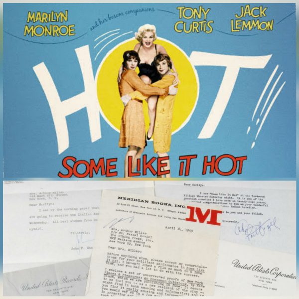 “Five letters regarding various topics, including one from the William Morris Agency congratulating Marilyn on Some Like It Hot. The letter reads, in part, ‘It is one of the greatest comedies I have seen in twenty-five years. Congratulations to you on your wonderful performance. And, you never looked lovelier.’ The letter is signed by Abe Lastfogel.”