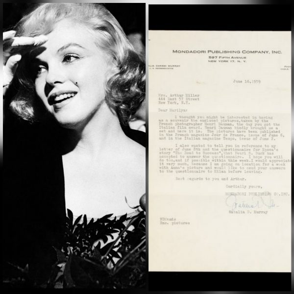 “Three letters to Monroe regarding publicity related issues, including requests for interviews, and a letter about photos of Monroe that had been taken by photographer Henri Dauman the day she received Italy’s highest award for acting [the David di Donatello award.]”