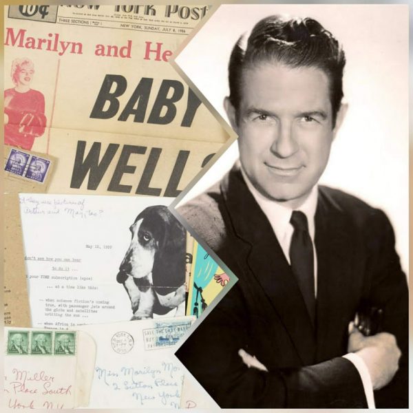 “Approximately nine cards, letters, or magazine cutouts sent to Marilyn over the years from actor Delos V. Smith Jr. (1906-97), who made a number of Hollywood films beginning in the late 1960s, including One Flew Over the Cuckoo’s Nest.” [The dog photos – and the baby headline – may be a jokey reference to the Millers’ basset hound, Hugo. Known for his eccentric humour, Smith was an Actors Studio member who befriended Marilyn, and would later share his memories in Susan Strasberg’s book, Marilyn and Me.]