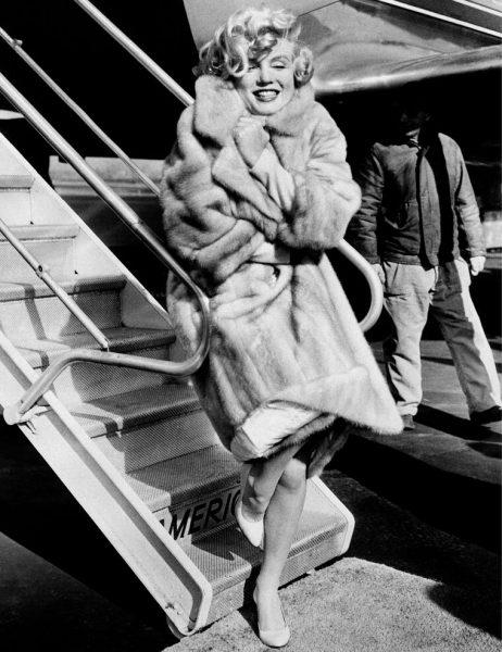 This photo of Marilyn arriving at Chicago’s Midway Airport en route to promote Some Like It Hot on a windy day in March 1959 – taken by Edward DeLuga for the Chicago Sun-Times (see here) – is featured in Jodi Peckman’s new coffee-table book for Rizzoli, Come Fly With Me: Flying in Style, set for release on April 27, Airmail reports.