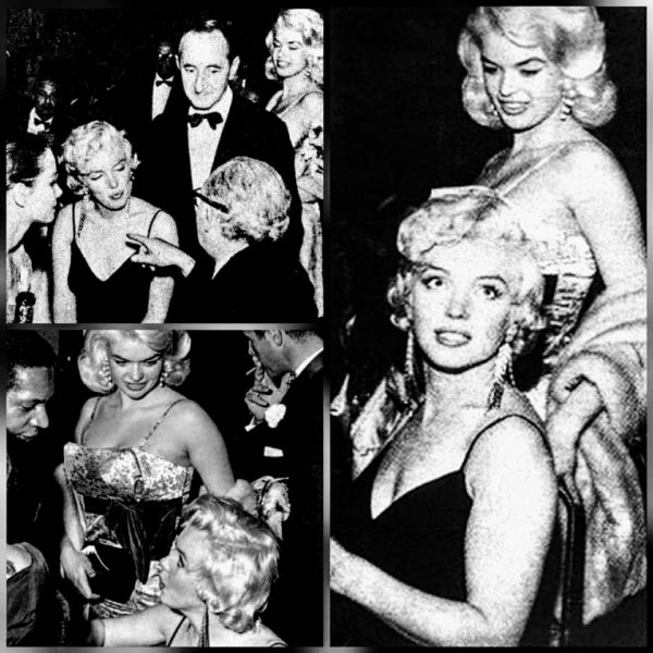 The images above show Jayne approaching, and being pointedly ignored, by Marilyn after the New York premiere of The Rose Tattoo in 1955. While it’s easy to read too much into photos, the cumulative impact seems all too obvious here. While some might argue Jayne was seeking a photo opportunity at her expense, Marilyn’s very public ‘ghosting’ was graceless and humiliating.