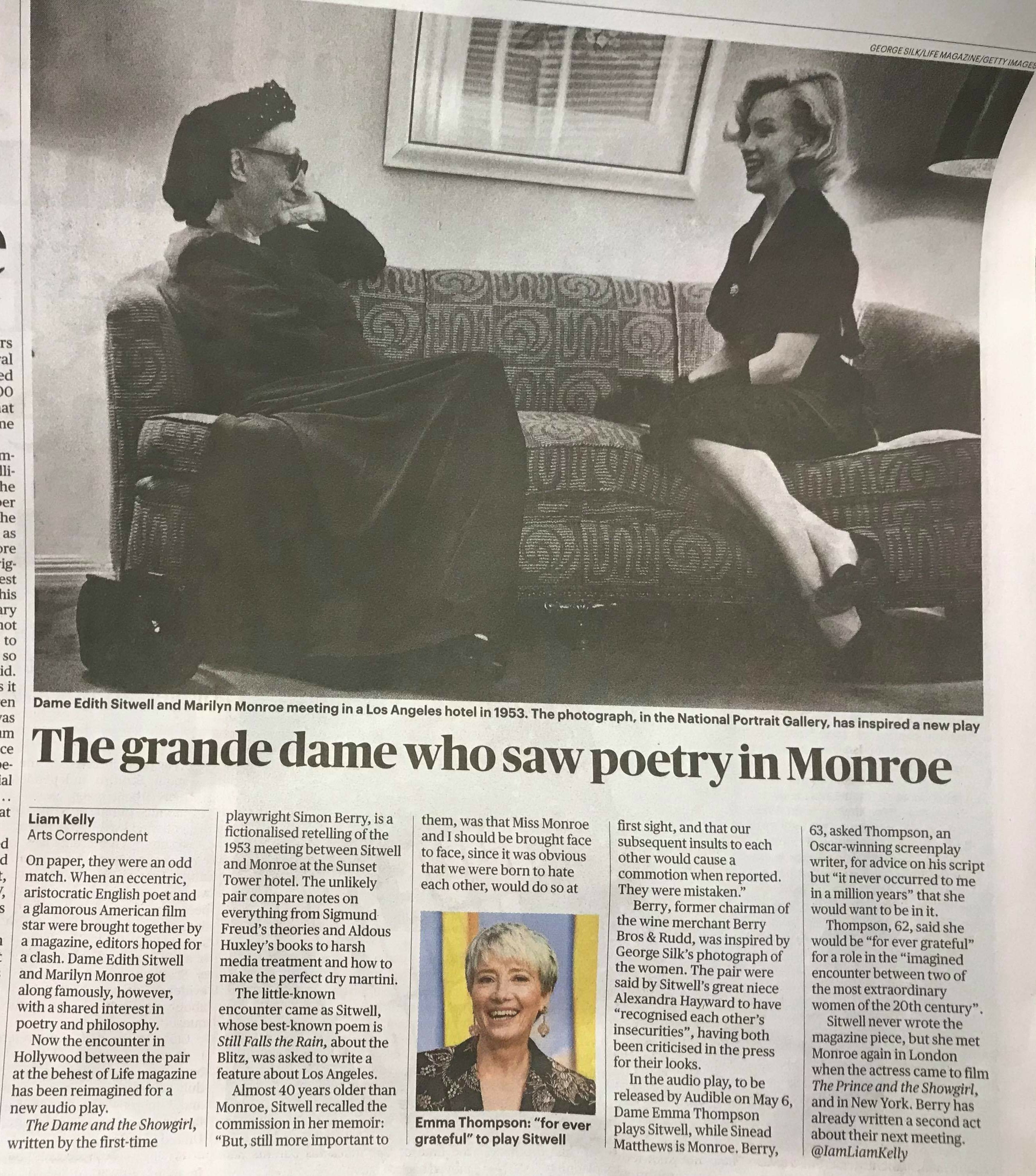 Marilyn’s friendship with the poet Dame Edith Sitwell has inspired a new audio play, The Times reports.