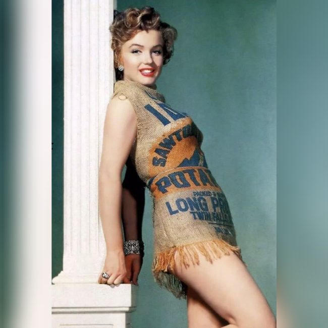 While Marilyn’s response was certainly eye-catching, the potato sack wasn’t a new idea as she had already made a similar pose for another studio photographer, Earl Thiesen, in 1951. Today, her risqué style is celebrated – and her provocative stance takes pride of place at the Idaho Potato Museum.