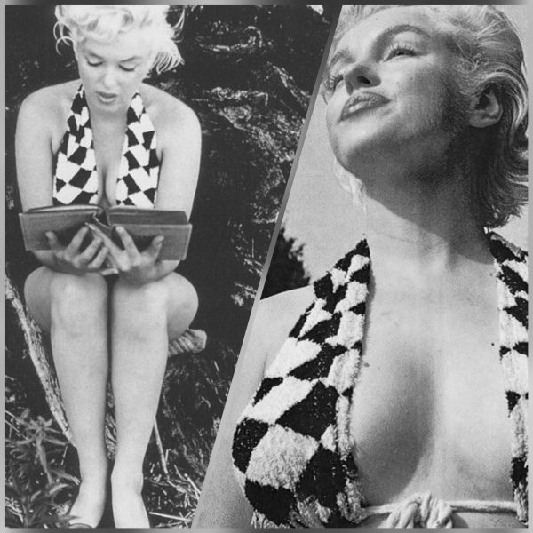 After moving to New York in 1955, Marilyn wore this chessboard-patterned, halter-necked towelling bikini top for her famous ‘Ulysses’ photo shoot with Eve Arnold, and on days at the beach among friends.
