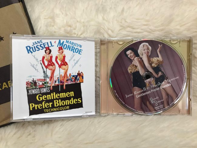 The recent CD reissue of the Gentlemen Prefer Blondes soundtrack mini-album features Marilyn and Jane’s three duets, plus ‘Diamonds Are a Girl’s Best Friend’ and Jane’s solo number, ‘Ain’t There Anyone Here for Love?’ The original sleevenotes are also reproduced.