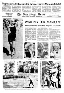 An Old, Old Game Moves From Hollywood To Coronado“SAN DIEGANS, hardly rested from Fiesta and barely ready for the fall entertainment season, last week found themselves following an interim diversion, either through their newspapers or first hand. The diversion: Marilyn Monroe, here for the filming of the movie Some Like It Hot. For five days throngs of San Diegans crossed the bay to join Coronadoans on the Strand, and watched and waited. Interestingly enough, among the hundreds of spectators, women and children outnumbered the men two to one. Meanwhile, San Diego Union photographers with telephoto lenses caught a few glimpses of Marilyn, and The San Diego Union’s drama editor, Edwin Martin, waited-and gathered material for this story.