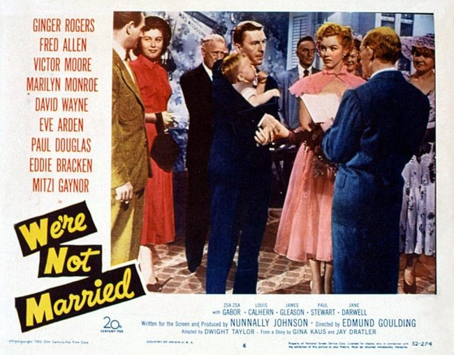 At the time of Full House, Marilyn had recently appeared in another anthology film, We’re Not Married! She was directed by Edmund Goulding, who had helmed one of the greatest anthology films, Grand Hotel, back in 1932. The script was by Nunnally Johnson, who would go on to write one of Marilyn’s most popular films, How to Marry a Millionaire – which also reunited her with David Wayne, in the last of their four films together.