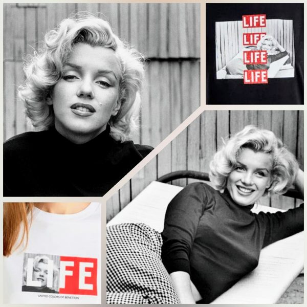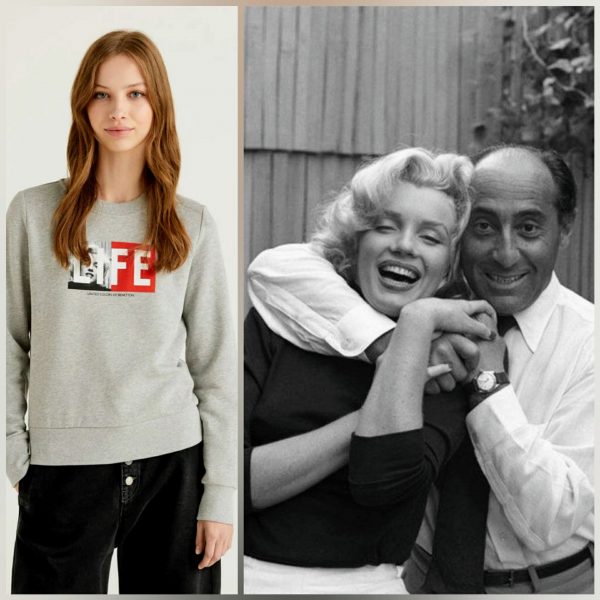Benetton has partnered with the LIFE archive for a new fashion range featuring images from the magazine, including two poses from Marilyn’s 1953 shoot with Alfred Eisenstaedt. Priced at £25.95 per T-shirt or £49.95 for this sweater, all items are made from 100% organic cotton and available in five different colours – see here.