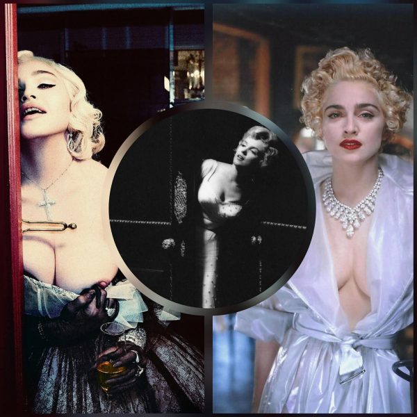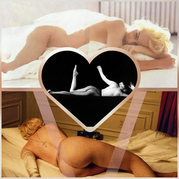 This bedside nude recalls Madonna’s earlier recreation of a Stern image, while her fishnet tights evoke Milton Greene’s ‘Black Sitting.’ Her evening gloves and bracelets remind us of ‘Diamonds Are a Girl’s Best Friend,’ and her performance at the 1991 Oscars.