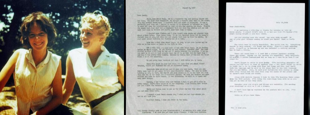 “Two single-page typed, unsigned file copies of letters from Marilyn to her stepdaughter, Jane Miller, dated July 16, 1958, and August 9, 1957 ($2,560). The 1958 letter is typed on the back of a piece of stationery from the Hotel Bel-Air and is addressed ‘Dear Janie-bean.’ The letter, written as Marilyn Monroe is preparing for Some Like It Hot , reads in part: ‘[T]hanks for helping me into my white skirt. I almost didn’t make it — but now that I’m busier I’ll start losing weight — you know where. Along with ukulele lessons I have to take I’m learning three songs from the 1920 period … I don’t know how my costumes in the picture will be yet. I’ll let you know.’ The second letter is written to Janie at summer camp while Marilyn was in hospital recovering from an ectopic pregnancy, and includes some amusing stories about Hugo, the basset hound. ‘Listen, I had better stop now because I want to get off a note to Bobby today,’ Marilyn signs off (referring to Jane’s brother, Robert Miller.) ‘Don’t worry about me in the hospital,’ she adds. “I am feeling much better now and I have the funniest Scotch nurse.'”