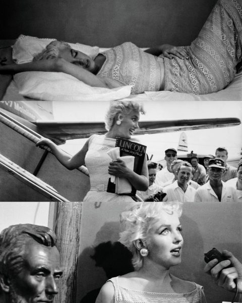 “In a text from 1978 reflecting on her work from the 1950s, Eve Arnold admits she found ‘portraiture perhaps the most difficult part of photography.’ To prevent the standard ‘mug shot’ and to get at what she found most interesting about the person – that which lay beneath the surface – she experimented with what she called a ‘portrait-in-action,’ where ‘the subject is absorbed in some activity or is shown against a background that interests [her].’ She tried to do this with Marilyn Monroe … She writes of Marilyn that ‘posing was a game she played with abandon and delight, drawing the other player, the photographer, into it with a silent but ever increasing psychic pressure’ … The portraits of Marilyn demonstrate Arnold’s dictum that ‘photographs are not made in a vacuum: the person before the lens is inseparable from the process.’ In her shooting sessions with the actress, she writes of Marilyn that ‘no word would be spoken, but she had made the connection, a tenuous thread that the photographer grasped, an umbilical cord that was sensitive, silent and tough.'”