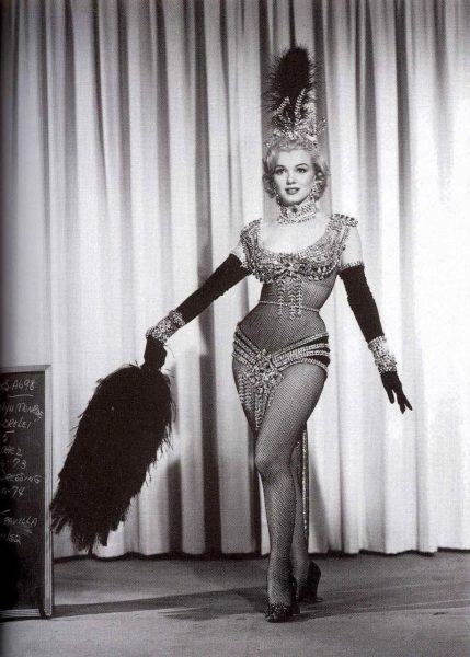 In an article for i-D magazine, Zoë Kendall argues that the history of the ‘naked dress’ began with the Venus de Milo – and has been continued by Marilyn and others in the modern era. She also notes that several years before Marilyn famously sang for the President in a gown described as ‘skin and beads,’ Hollywood costumer Orry-Kelly had created the illusion of semi-nudity for her ‘I Wanna Be Loved By You’ number in Some Like It Hot. (A further case could be made for Marilyn’s original ‘Diamonds Are a Girl’s Best Friend’ costume from Gentlemen Prefer Blondes – a fishnet bodystocking with strategically placed rhinestones. After the studio rejected it as too revealing, Travilla designed an elegant pink gown for Marilyn instead.)