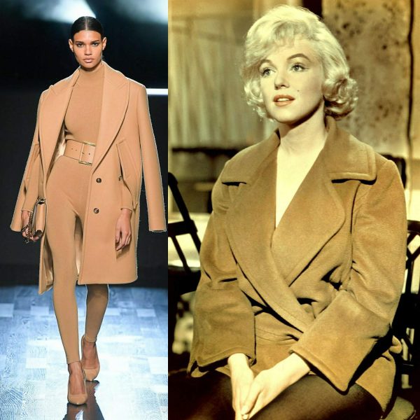 Covering New York Fashion Week’s ready-to-wear collections for Fall 2022, Vogue has noted at least two designers inspired by Marilyn. Firstly, Naeem Khan drew upon the glamour of Norman Norell’s mermaid dresses, while Michael Kors‘ clutch coats hark back to Marilyn’s favourite camel coats (and these also inspired Max Mara in 2015.)
