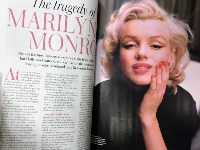 As we prepare for the 60th anniversary of Marilyn’s death this summer, UK magazine The Lady‘s April issue revisits the subject with ‘The Tragedy of Marilyn Monroe,’ a four-page article by Genevieve Roberts. While dubious sources like Colin Clark and June DiMaggio should be taken with a large pinch of salt, the valuable input from Douglas Kirkland and Michelle Morgan (quoted below) makes it worth reading.