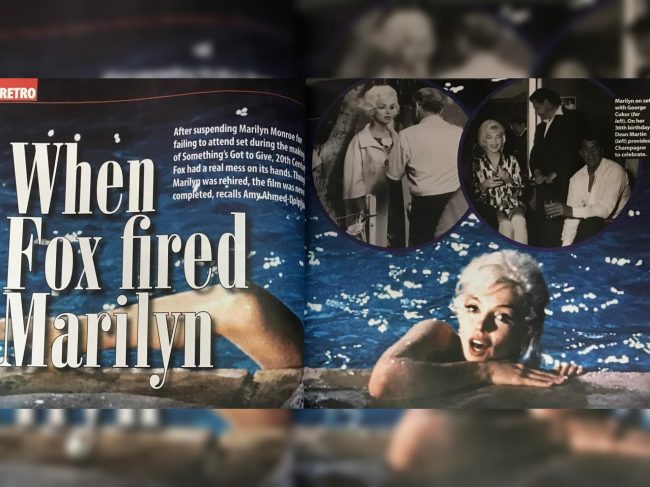 Sixty years after Marilyn shot the infamous ‘pool scene,’ UK nostalgia mag Yours Retro looks back on the troubled production of her last, unfinished movie, Something’s Got to Give, with a 3-page article by Amy Ahmed-Dolphin in the latest issue (#50, with Elizabeth Taylor on the cover.)
