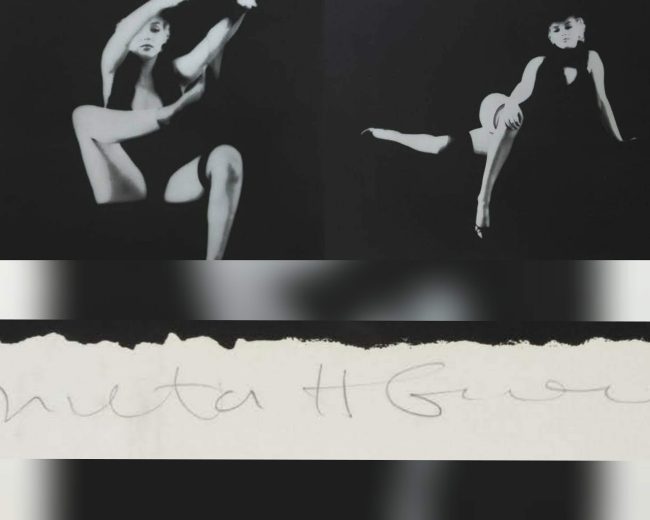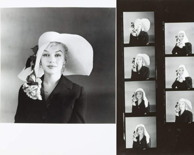 This 1970s print by Carl Perutz (at left) was the top seller at yesterday’s Julien’s Auctions online sale of memorabilia for Marilyn’s 96th birthday, fetching $8,960. The photograph came from the vast collection of Kim Goodwin, a celebrity makeup artist known for his unique Marilyn dolls, who passed away in 2018. An original contact sheet from the same 1958 ‘hat sitting’ sold for $1,920.