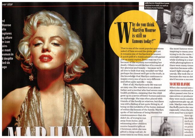 Almost sixty years after her death, newspapers and magazines across the globe are pondering the secret of Marilyn’s enduring legend – but few are more qualified than Monroe biographer Michelle Morgan, who contributes an illuminating six-page cover story to the latest issue (#51) of UK nostalgia mag Yours Retro.