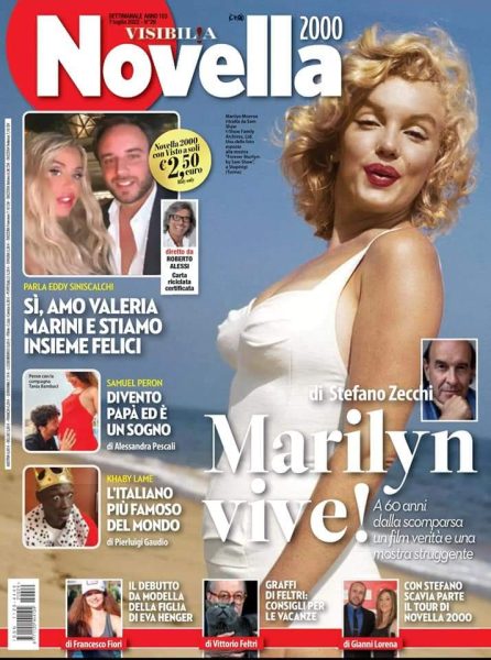 Marilyn has graced the cover of Italian weekly Novella numerous times over the years. Now, as a new exhibition opens in Turin (see here), Marilyn also returns to the magazine’s latest incarnation, Novella 2000, with a summery cover shot by Sam Shaw.