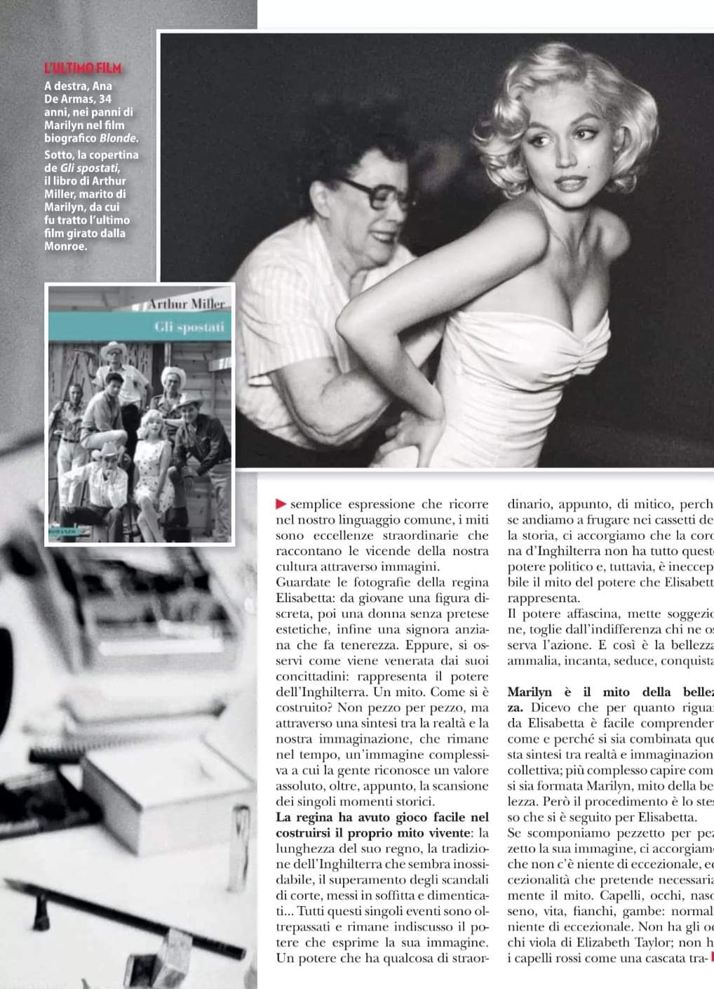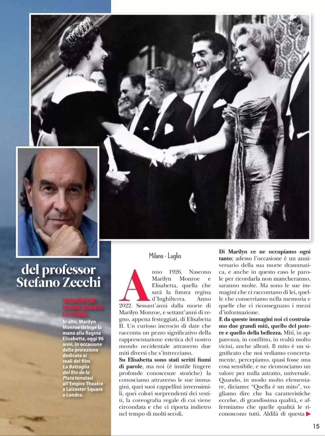 Inside, Stefano Zecchi considers the parallel lives of Marilyn and Queen Elizabeth II. Both women were born in 1926, and would famously meet 30 years later. And this year, the Queen celebrates the 70th anniversary of her coronation, while Monroe fans remember the 60th anniversary of her death. (I wonder if Professor Zecchi has read Michelle Morgan’s excellent book, When Marilyn Met the Queen?)