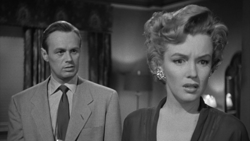 Widmark lets himself look pathetic and desperate, playing against Monroe’s intense sadness. The haunted look in Monroe’s eyes as Nell alternately pleads with and threatens Bunny (Donna Corcoran) not to ruin her night with Jed (Widmark) conveys just how lost and broken this woman is, latching on to the only person who’s shown her a minimal amount of affection.