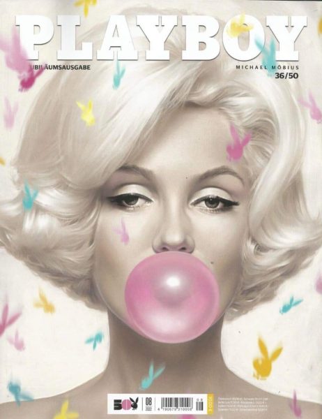 While Playboy is now digital-only in the US, the German edition is still in print and has celebrated its 50th anniversary by commissioning unique covers from fifty artists. Among them is Michael Moebius, who contributed a version of his pop-art image of Marilyn chewing bubblegum (based on a photo by Bert Stern.) Order your copy here.