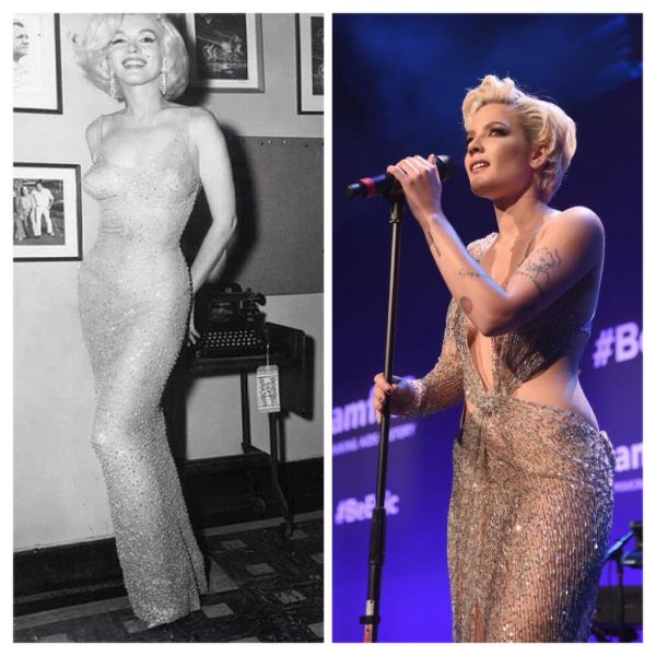 It’s not the first time that Halsey has taken a leaf out of Marilyn’s style book – in 2018, she sported a blonde crop and ‘naked dress’ reminiscent of the ‘Happy Birthday Mr President’ dress (see here.)