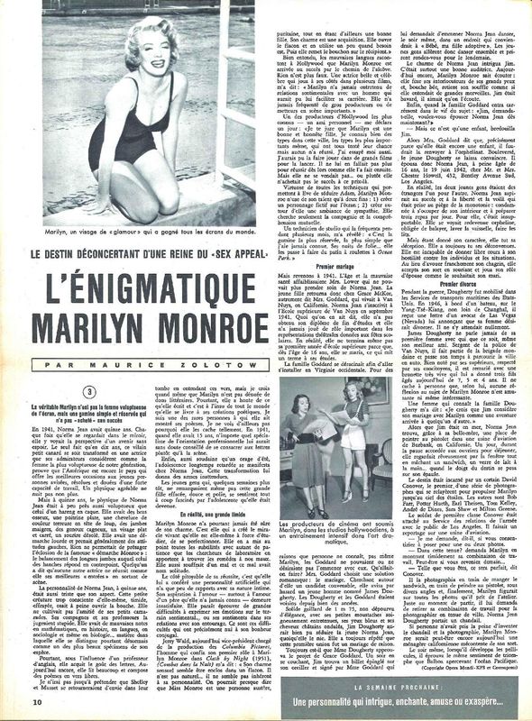 And finally, here’s how L’Illustré commemorated her passing in 1962, with a tribute headlined ‘Marilyn: Journey to the End of Glory.’