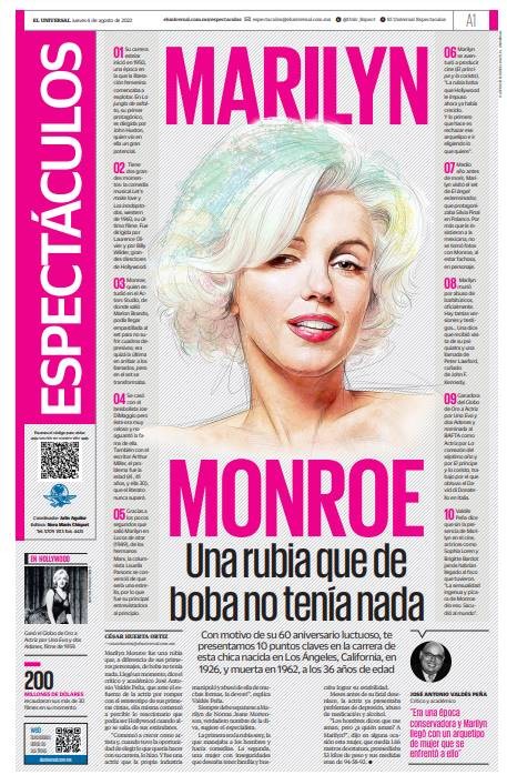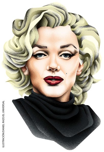 Marilyn also appears in today’s edition of El Universal (with illustrations by Daniel Razo, based on photos by Alfred Eisenstaedt and Bert Stern.)