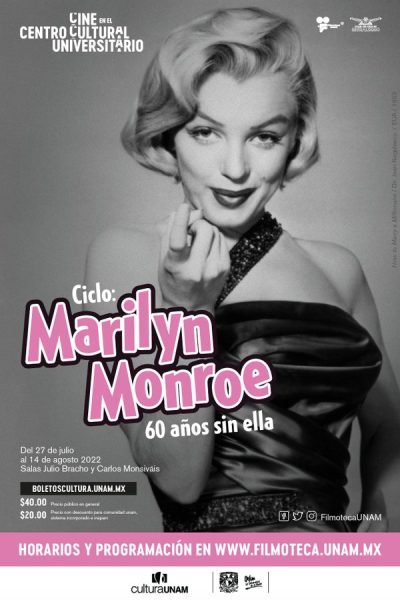 A major retrospective of Marilyn’s glittering movie career is now in full swing at the Filmoteca UNAM in Mexico City. Today, August 4, Some Like It Hot, Gentlemen Prefer Blondes and The Misfits will be screened; with The Prince and the Showgirl, Niagara, and River of No Return to follow tomorrow, August 5; Don’t Bother to Knock, How to Marry a Millionaire and The Seven Year Itch on Saturday, August 6; and another chance for Blondes, Misfits and Hot on Sunday, August 7.