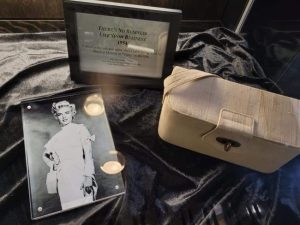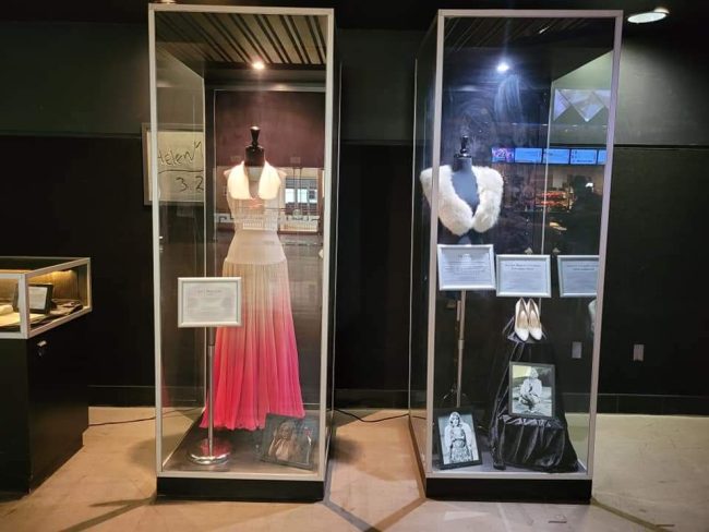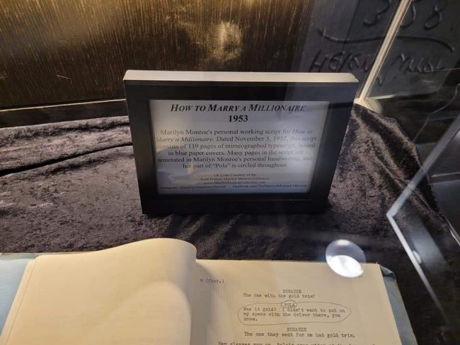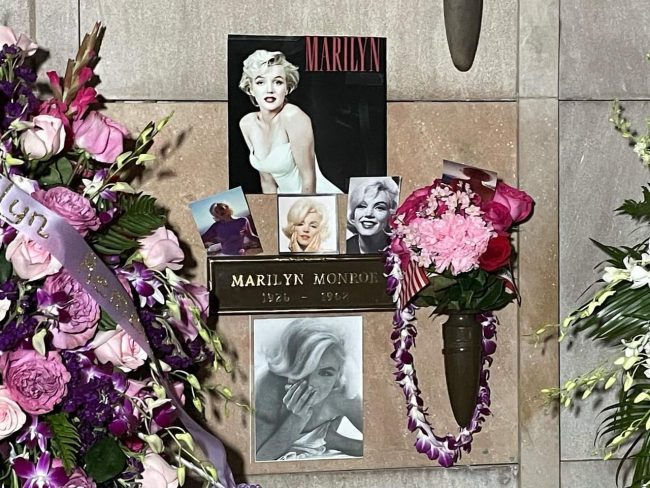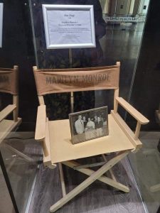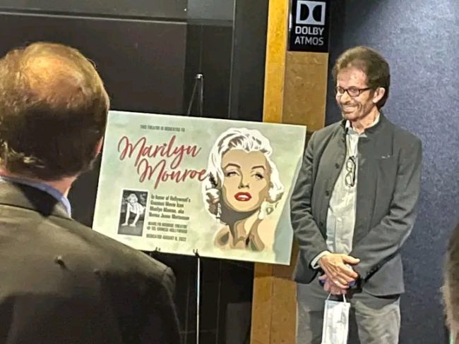 While the Marilyn Remembered fan club hosted a service commemorating the 60th anniversary of her passing on August 5 at Westwood Memorial Park, at the TCL Chinese Theatre on Hollywood Boulevard, Oscar-winning actor and dancer George Chakiris dedicated an auditorium as the Marilyn Monroe Theatre. An exhibition of Marilyn’s movie costumes and props from the collections of Greg Schreiner and Scott Fortner is currently on display in the foyer (photos by Lorraine Nicol.)