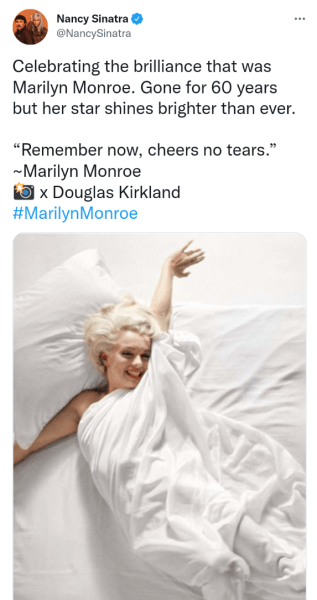 The iconic singer Nancy Sinatra, who met Marilyn in her father’s house as a child, paid a warm tribute.