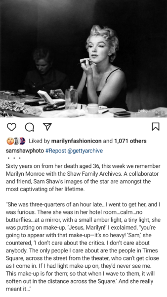 The Shaw Family Archives posted classic images of Marilyn to Instagram, accompanied by Sam’s thoughts on his dear friend.