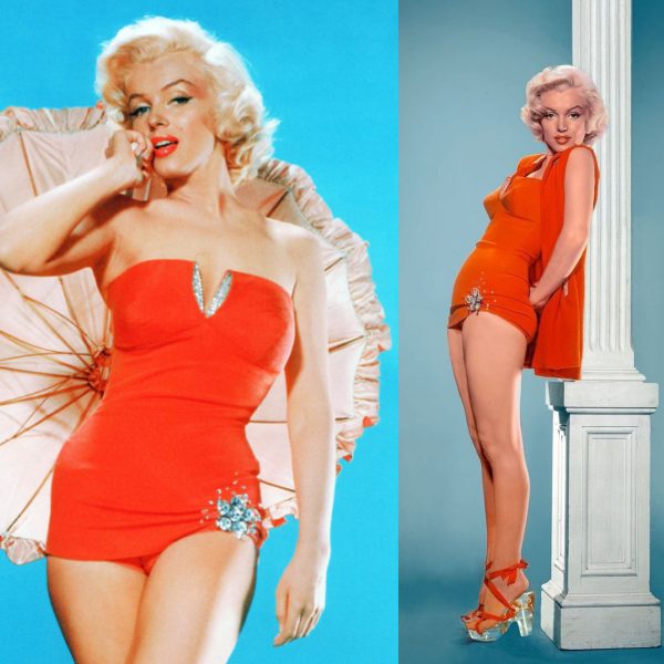 Marilyn’s bejewelled red bathing suit, designed by Travilla for the fashion show scene in How to Marry a Millionaire, is named by Cosmopolitan as one of the most iconic swimsuits in movie history. Other honorees include Esther Williams in Easy to Love; Jane Russell in The French Line; Deborah Kerr in From Here to Eternity; and Elizabeth Taylor in Suddenly Last Summer.
