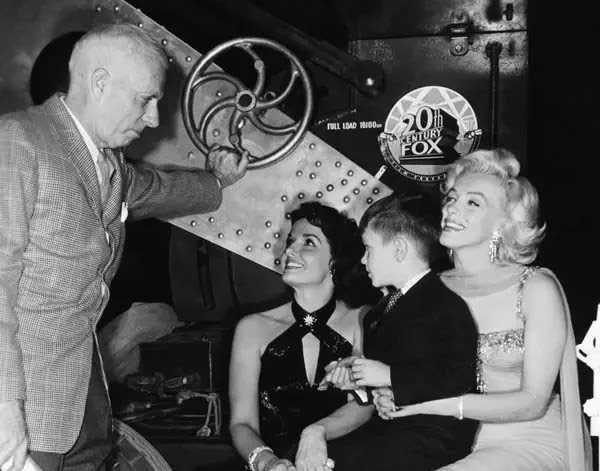 Hawks with Marilyn, Jane Russell, and child actor George Winslow on the set of Gentlemen Prefer Blondes