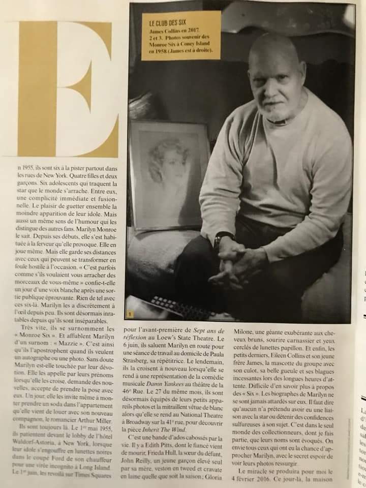 In the October issue of Vanity Fair‘s French edition (#105, with actress Elsa Zylberstein on the cover), Sébastien Cauchon writes about his meeting with James Collins, the last surviving member of the Monroe Six.