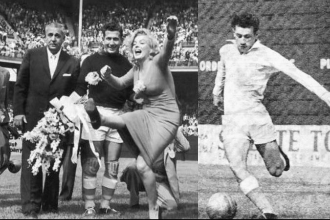The distinguished scientist, Ben Zinn, was a football star in Israel before coming to America at the dawn of the space age – and playing for his country in a friendly match against the US soccer team at Ebbets Field, Brooklyn, where Marilyn gave the opening kick on May 12, 1957 – as Bob Bahr writes for the Atlanta Jewish Times. You can read more about the event here (and incidentally, Bahr wrote a cover story about Marilyn’s Jewish conversion for the magazine back in 2019 – see here.)