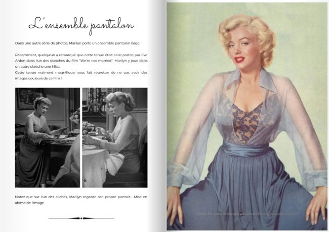 One of the outfits Marilyn wore for Muray, a blue pantaloon suit, was first worn by actress Eve Arden in We’re Not Married! (1952), the portmanteau film in which Marilyn also appeared. (The film’s costumer was Elois Jenssen.)