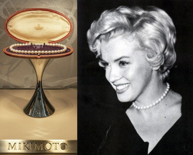 The pearl necklace gifted to Marilyn by the Emperor of Japan when she visited Tokyo with husband Joe DiMaggio in February 1954 are on display at Zadok’s Jewellers for the next two days, the Houston Chronicle reports.
