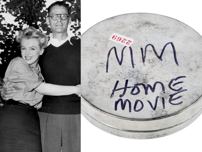 “A vintage home movie reel featuring Marilyn Monroe at multiple locations. June 29, 1956, Monroe, soon-to-be husband Arthur Miller, and Miller’s parents are seen at a press conference at Miller’s farm in Roxbury, Connecticut. This scene from the film is approximately 23 seconds. Note that parts of this scene are repeated at the end of the film. Various footage from 1956 shows Monroe at airports traveling to and from Los Angeles to film Bus Stop. These scenes from the film are approximately 40 seconds in length. Total length: one minute, 37 seconds. (From the estate of Frieda Hull of the Monroe Six)”