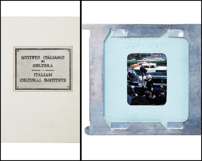 - “A group of 11 slides of Marilyn and Arthur Miller, from May 13, 1959, at the Italian Consulate on Park Avenue, where she attended a ceremony to receive the David di Donatello Award, the equivalent of the Academy Award, for her work in The Prince and the Showgirl.” – SOLD for $1,152