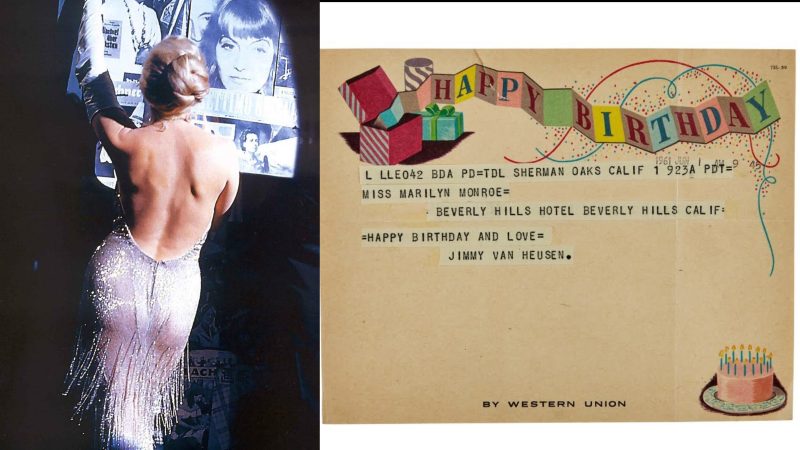 “A 1961 telegram from songwriter Jimmy Van Heusen, who cowrote ‘Specialization’ and ‘Let’s Make Love’ for the 1960 film Let’s Make Love. The telegram reads simply, ‘Happy birthday and love, Jimmy Van Heusen.'”